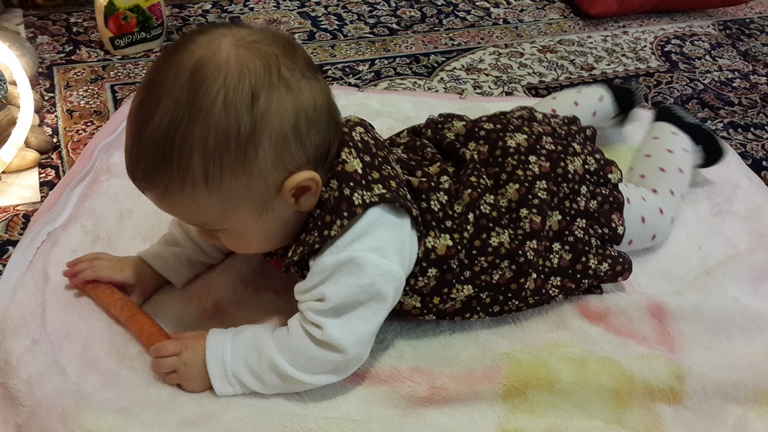 برای 3 شب تمام دریچه های اتاق ها رو بستیم تا باد گرم فقط بیاد تو اتاق ما و زمین هم گرم باشه. شما رو بردیم تو اتاق خودمون روی زمین کنار تخت خوابوندیم. مشکل خیلی جدی ای پیش اومد! چون شما خیلی پایین بودی، وقتایی که شروع به تکون خوردن میکردی تا مامان بهت شیر بده، من خیلی زود متوجه نمی شدم و وقتی متوجه بیدار شدن شما می شدم که شما بیدار شده بودی و چند تا قل خورده بودی و وقتی مامان رو میدیدی که شما رو نگاه می کنه خیلی شاد و خوشحال و سرحال به مامان می خندیدی و این مامان بدبخت بود که باید 2 بار نصف شب شما رو 20 دقیقه روی پاش تکون میداد تا بخوابی!