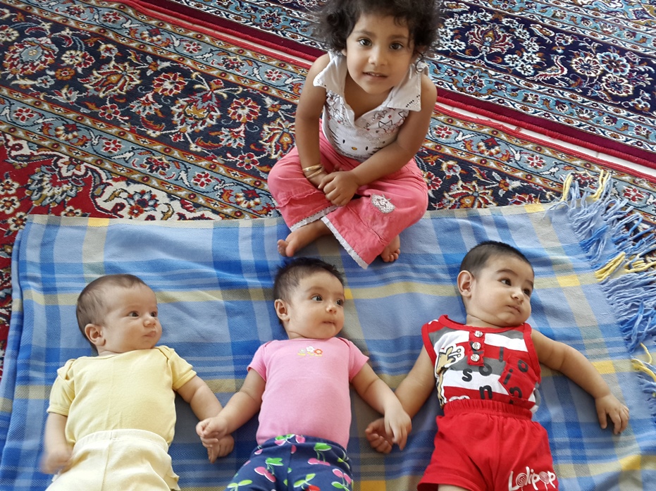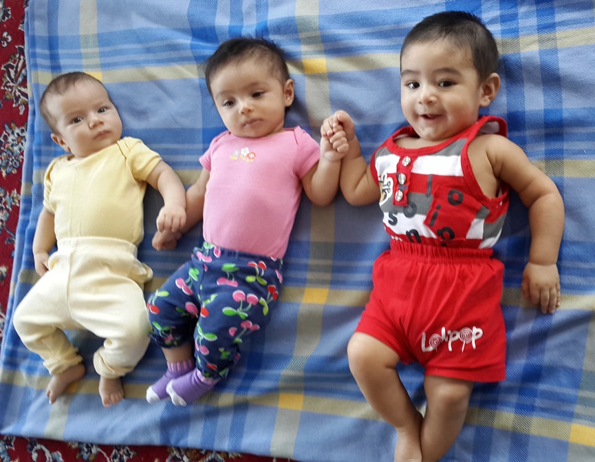 سمت چپ محمد آقای 4 ماه و نیمه هستن. وسطی ریحانه خانمه که 12 روز از شما بزرگتره و سمت راستی هم گل گلاب زهرا خانم ما.